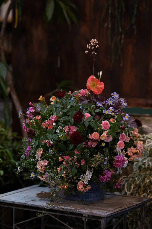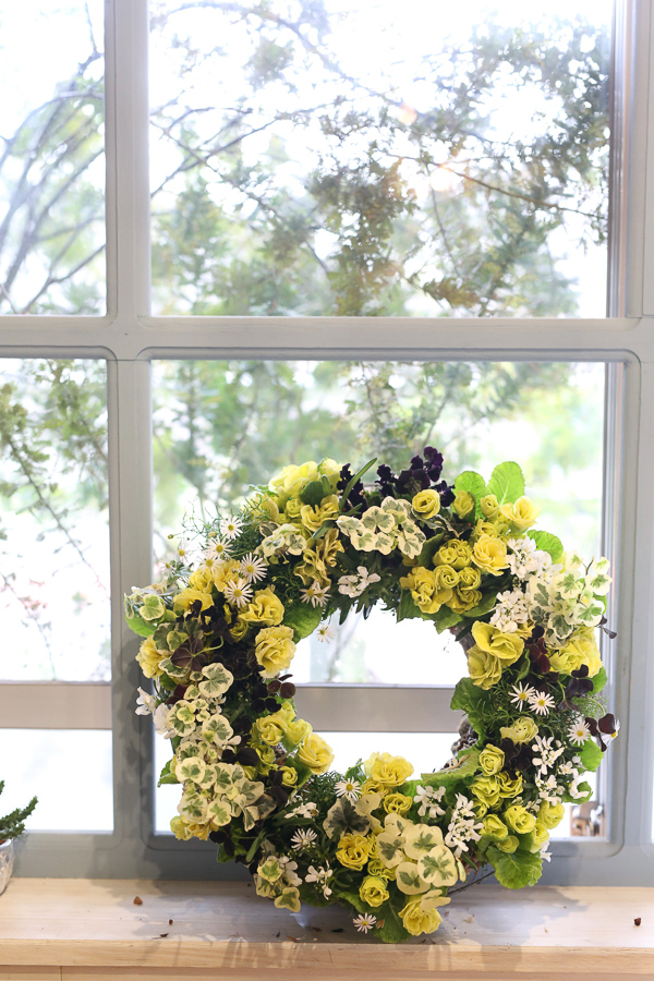 福岡サロンも好きなように、好きな花を使って皆さん作られました。プロコースで1年を通して自由に作られた皆さんが、アドバンストコースでは全体のフォルムやカラーバランス、質感などより細かな表現を取り入れて世界観を演出できる作品へと近づきます。