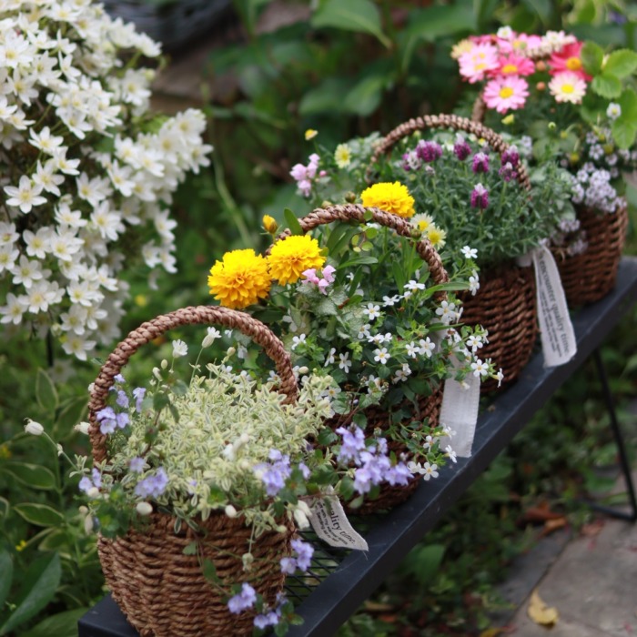 器の指定はありませんので、植えたい鉢やバスケットをご持参下さい。