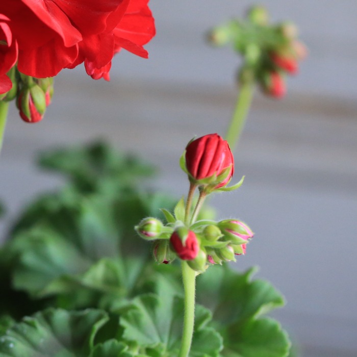 華やかな真紅の花びらが美しいゼラニウム