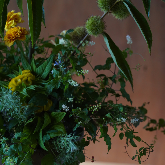 【自分で植える】栗の木とジュズサンゴのブリコラージュフラワー