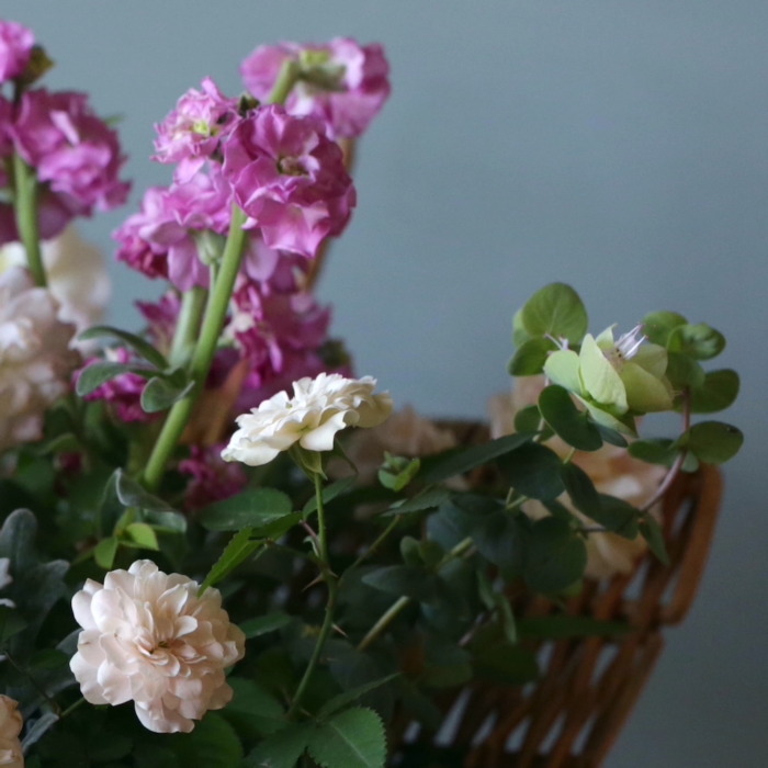 送料無料【1点もの】ミニバラとストックのブリコラージュ(東京発送)