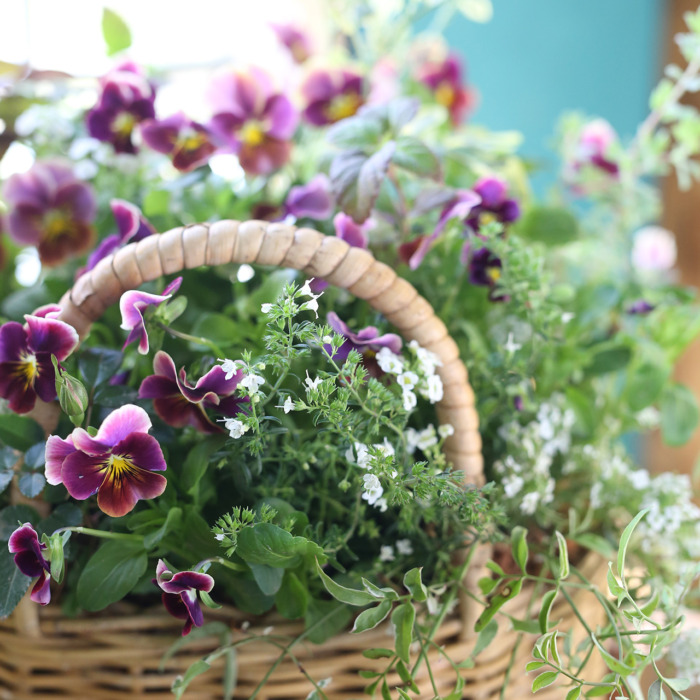 ビオラ チェリーショコラ、アリッサム、羽衣ジャスミン、リッピア スイートハーブメキシカン、他