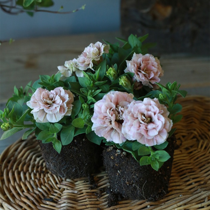 優しくシックなピンク色のモカモンブランとイチゴやエリゲロンが野原のような雰囲気を作る花苗セットです。