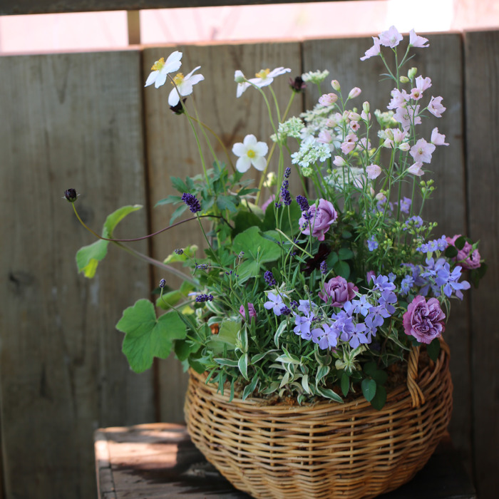 【1点もの】クレマチスとバラのナチュラルバスケット(東京発送)