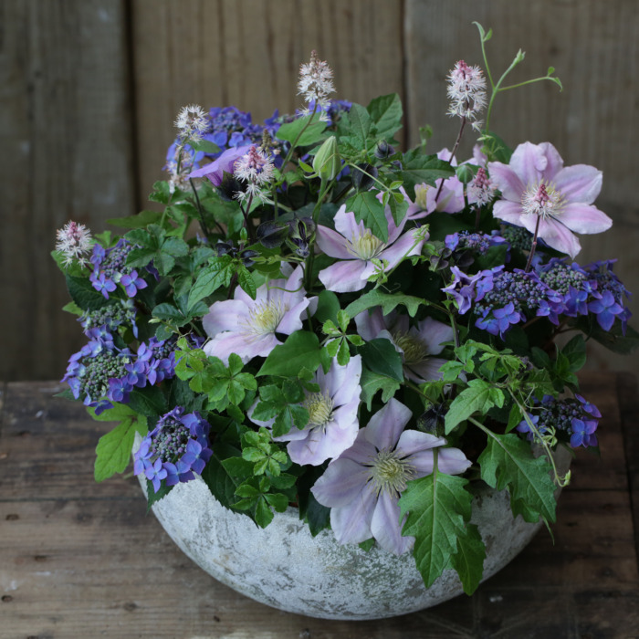 【1点もの】クレマチスとヤマアジサイのボウルブリコラージュ