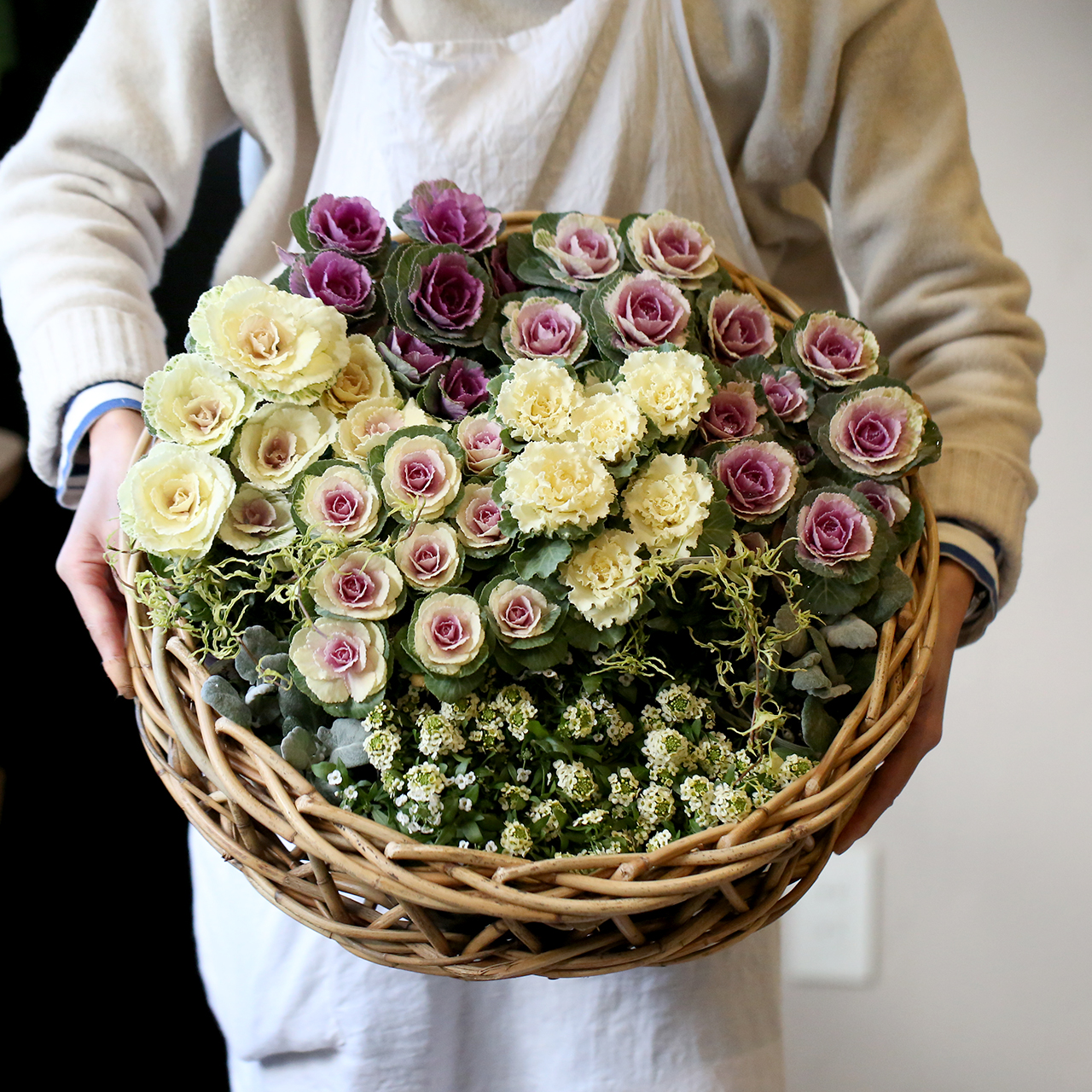 レッスンでは、バラのように美しい秋田緑花農園のハボタンブーケを使って “世界にひとつだけのハボタンリース” を作っていきます。