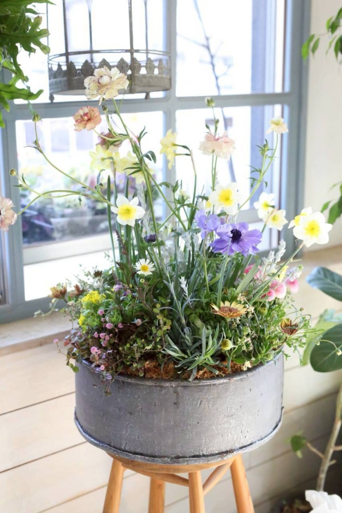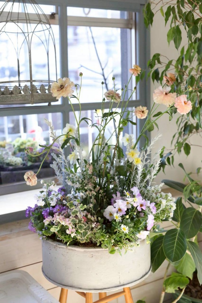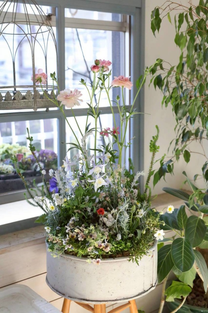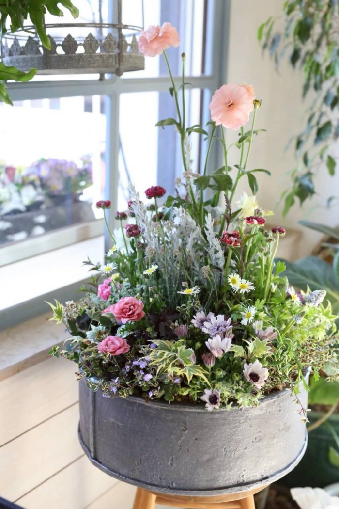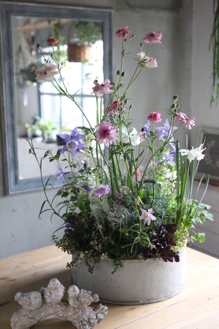 このガーデンコフレ、一見とても大きくて躊躇してしまうのですが、とっても植えやすく、出来上がりも抜群に可愛く仕上がる作りになっているんです。みなさん、最初の一言は「大きい〜💦」ですが、植え始めると根鉢が渋滞することがないので