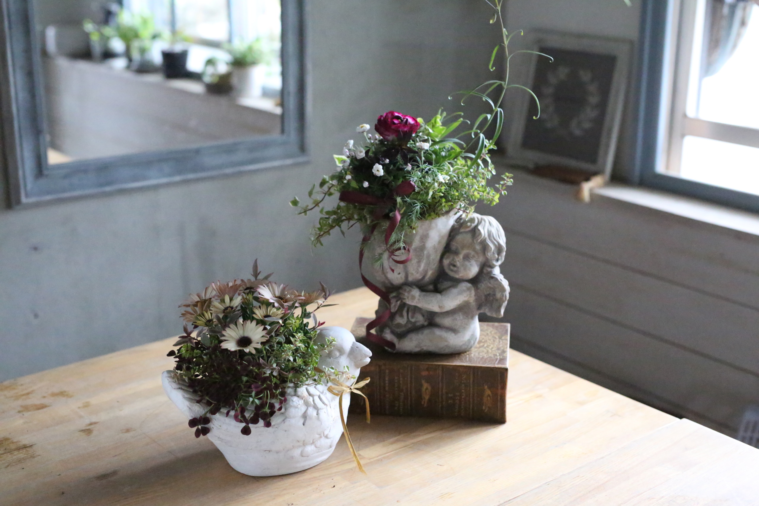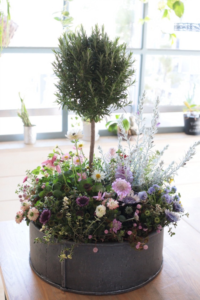 華もみじがオリジナルで作った大きな鉢に植えるレッスンでした。